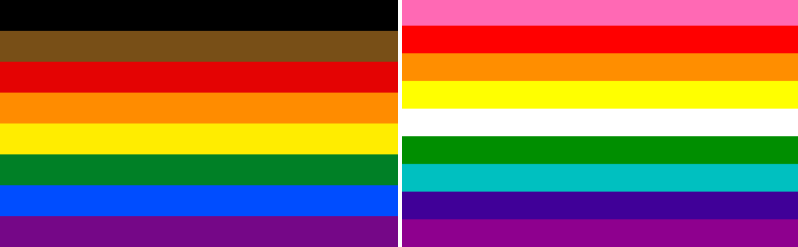 It seems like the Pride Flag is in the process of increasing the number of colors again. There’s a new version that adds stripes to support people of color and another that adds a white stripe to represent the full spectrum of gender and sexuality as well as “peace and union among all.”