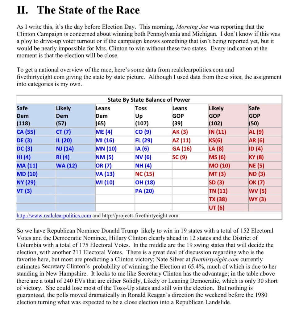 If you’re looking for bellwethers, if Trump wins NC or Maine 2, it’s going to be a long night. If Biden takes Florida or NC or Georgia, he probably has a clear path.