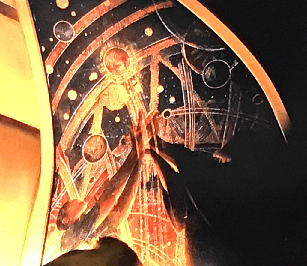 This is an odd sequence. It looks like some things are launched from the funeral which impact on a gas giant, making it all wibbley wobbly. The funeral must be taking place on one of the moons. Shift to Demerzel watching remotely.
