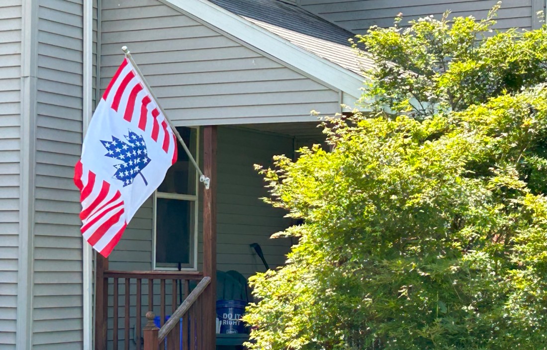 Mostly this year, we’ve been flying flags I’ve already written about. There was the Maine 1901 flag over the holidays, and then the Flag of the Earth for Earth Day. Until yesterday we were flying the Ally flag for Pride Month. That one didn’t get to fly for long; June is a busy month for flag-related events. Juneteenth is right around the corner.