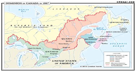 The United States has a reasonably clear starting point. That, of course, is coming up in three days. The formation of Canada is a somewhat more complicated affair. “Canada Day,” formerly known as “Dominion Day” or colloquially, “Canada’s Birthday” commemorates the passage of the British North America Act. Passed on 1 July 1867 the act confederated the Province of Canada with New Brunswick and Nova Scotia to form the Dominion of Canada, a largely self-governing component of the British Empire. On that day the Provence of Canada was divided into Ontario and Quebec.